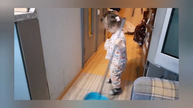 Танец Золушки со шваброй в ожидании принца (Малышка танцует с совком для уборки)