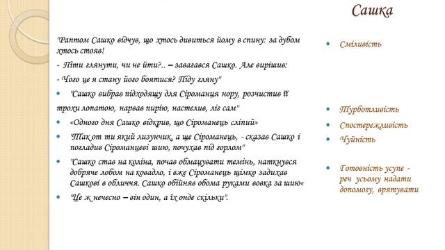 Характеристика Сашка. Повість М. Вінграновського "Сіроманець"