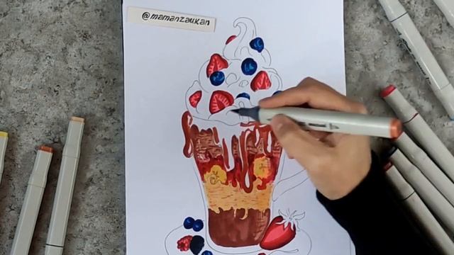 Десерт мороженое. Пошаговое рисование маркерами