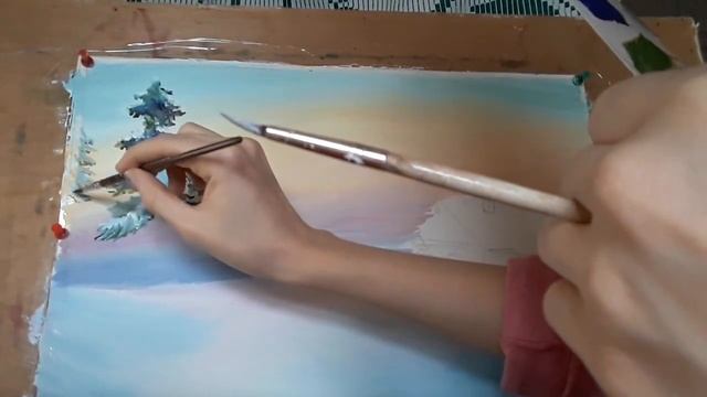 Как нарисовать зимний пейзаж гуашью. Урок №2/ Winter landscape in gouache