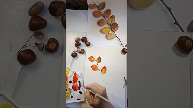 Мастер-класс Осенняя веточка акварель Художник Оксана Кудряшова okoshko art
