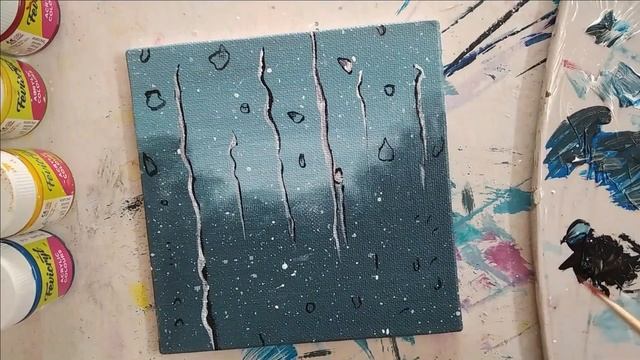 Rainy Day Acrylic Painting For Beginners | Rainy Window Painting | Easy Mini Canvas Painting