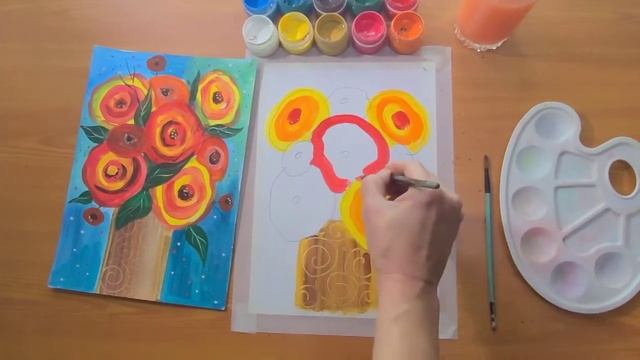 видеоурок по Изо для начинающих. натюрморт гуашью:" Яркий букет"
