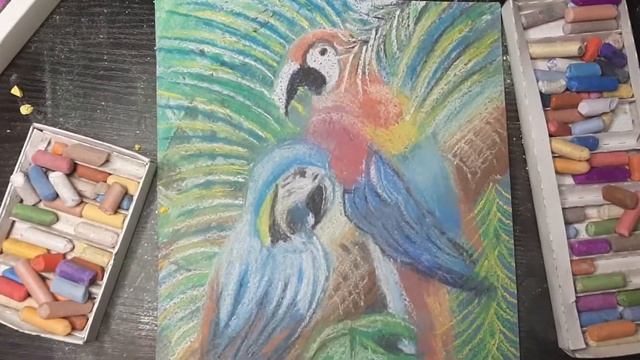 Рисую пастельными мелками Попугайчиков в джунглях!