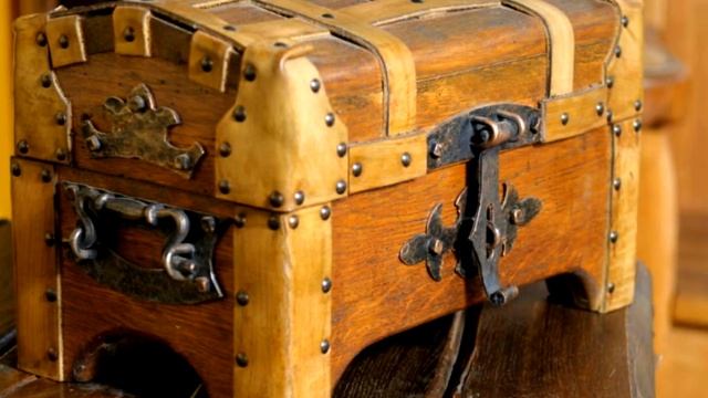 Деревянная шкатулка сундучек под старину с коваными ручками и замком маленький сундук