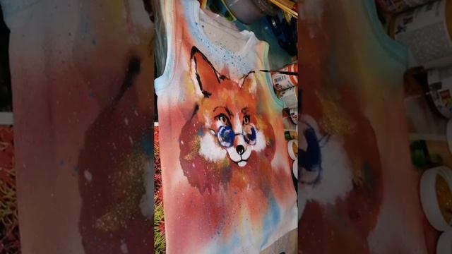 Как нарисовать лису | Ручная роспись детской майки | Ускоренное видео процесса