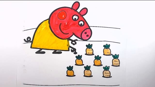 Как нарисовать свинку пеппа играет в фермера//Раскраска гуашью для детей