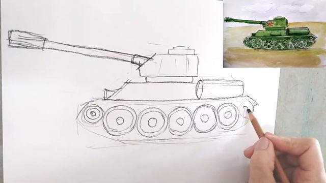 Танк. Поэтапное рисование. Преподаватель Пищева Людмила Владимировна.