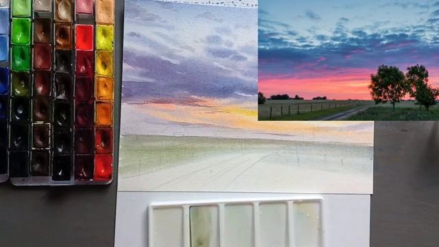 Как нарисовать красивый горизонт акварелью | ускоренное видео #горизонт #облака #акварелью
