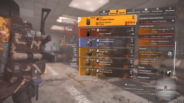 ПВП билд на урон в голову The Division 2 (наводчик, бдительность); Build for head Damage