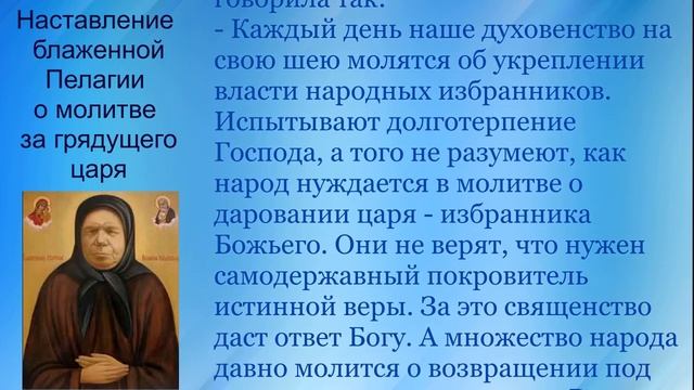 Наставление блаженной Пелагии о молитве за грядущего царя
