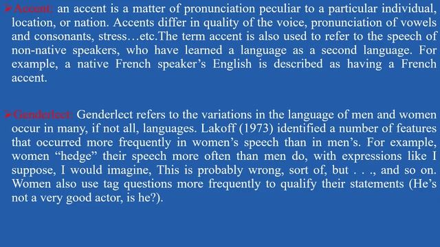 Sociolinguistics - Lesson 4 - Idiolect/variety/sociolect/register/accent/genderlect/jargon/argot