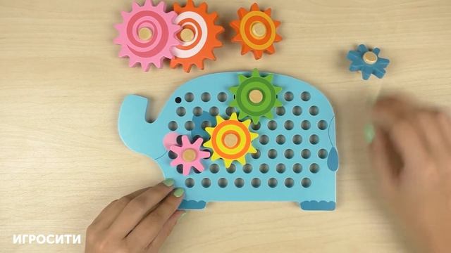 Игра - головоломка из массива дерева с шестеренками "Слоник"