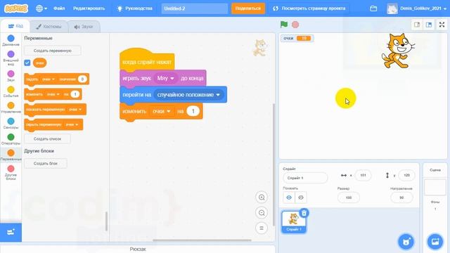 #Scratch. Урок 1.5 Обнуление переменной. Видеоуроки с нуля для детей 9-11 лет от школы Codim.Online
