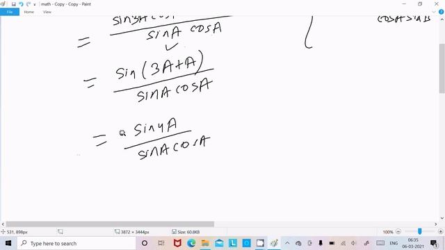 Prove that (Sin3A/SinA) + (Cos3A/CosA) = 4Cos2A