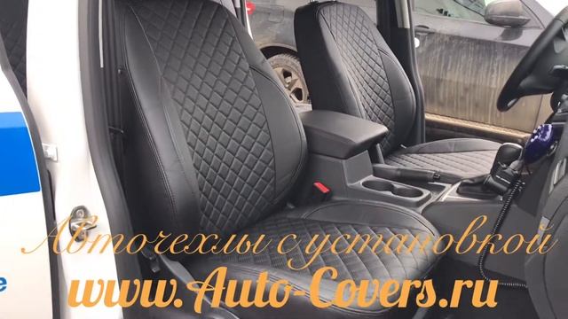 Чехлы на Фольксваген Амарок из Экокожи Ромб Чёрного цвета, установка авточехлов с подшивкой.