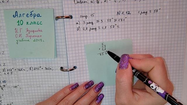 стр 15 #1.12 Алгебра 10 класс. Выразите в градусах угол