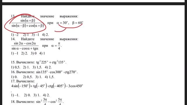 Математика. Тригонометрия. Тема 103. Значения тригонометрических функций разных углов