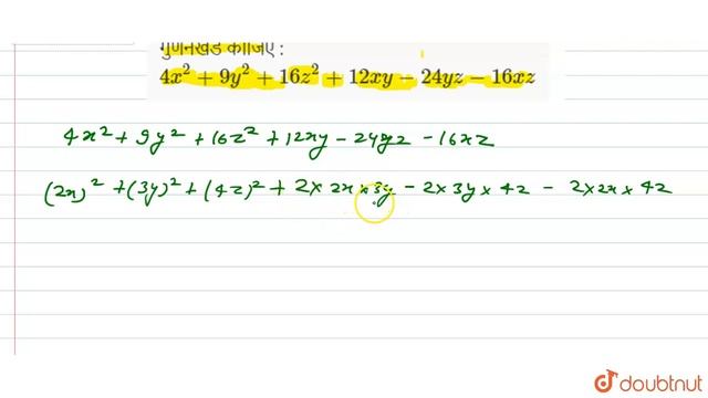 गुणनखंड कीजिए : `4x^(2) +9y^(2) + 16 z^(2) + 12 xy - 24 yz - 16 xz`