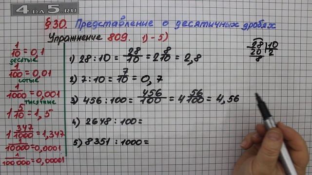 Упражнение № 809 (Вариант 1-5) – Математика 5 класс – Мерзляк А.Г., Полонский В.Б., Якир М.С.