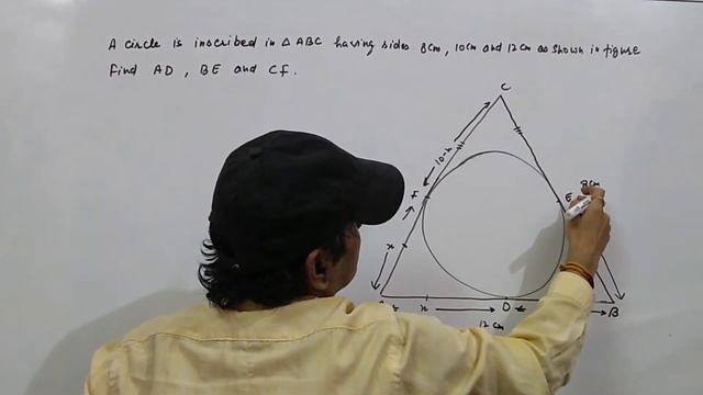 A circle is inscribed in triangle ABC having sides 8 cm, 10 cm and 12 cm as shown in figure. Find A