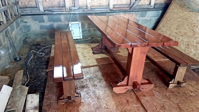 Еще один комплект деревенской мебели (стол, две лавки) сделанного своими руками в селе Нижний Шкафт