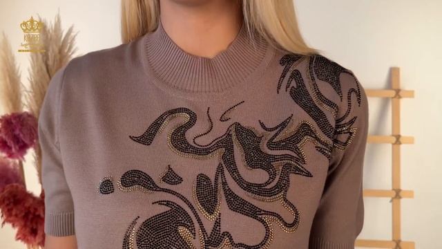 Женский трикотаж с коротким рукавом с вышивкой камнями - Каталог Kazee