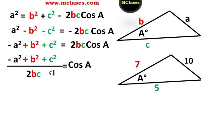 Fórmula para calcular un ángulo con la Ley de Cosenos