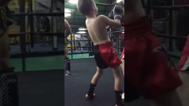 Саша 8 лет на тайском боксе
