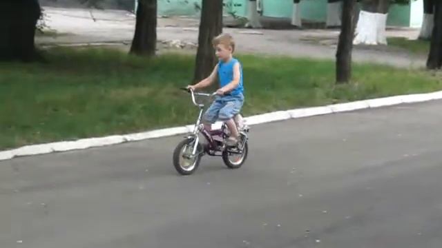 Тимофей на двухколесном велосипеде