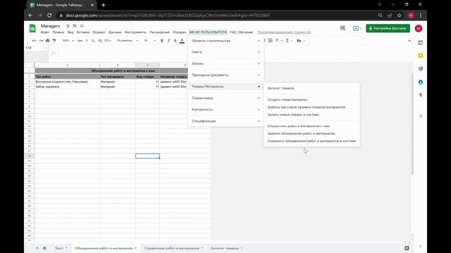 Автоматизация процессов строительства (Объеденение типов работ и материалов к ним)