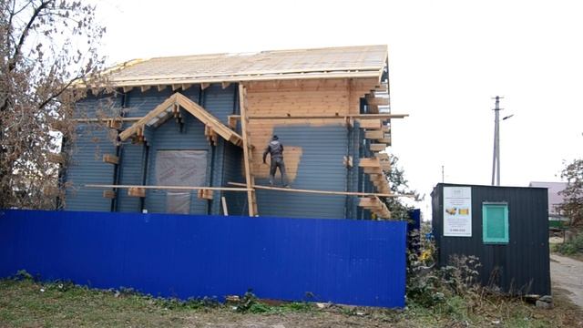 Покраска деревянного дома по технологии двойной брус.
