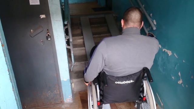 Преодоление на коляске пандуса в парадной 12.04.2015