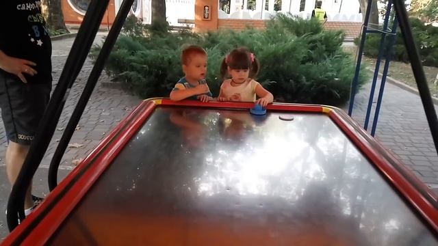 Маша и Никита на детской площадке возле дома. Предновогодняя прогулка зимой.