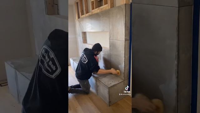 Grouting a 33”x33” Porcelain fireplace with miters!