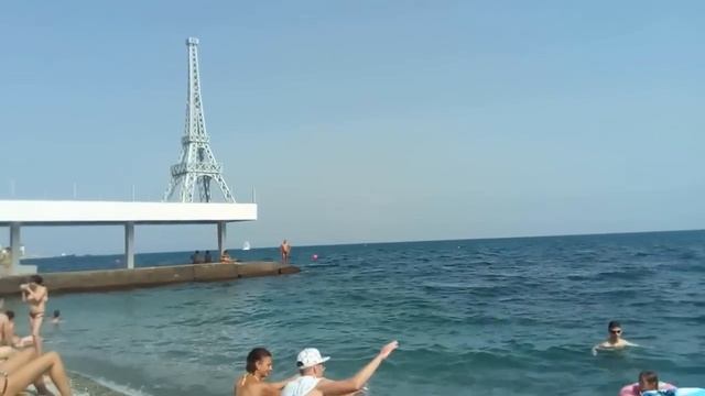 Массандровский пляж в Ялте. Много народа купается и загорает. Крым. 19 июня 2016 г.