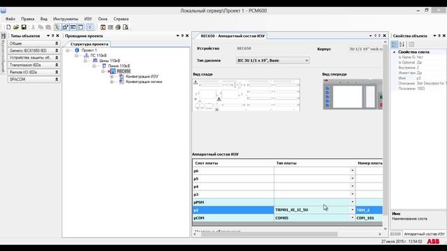 Конфигурация микропроцессорного терминала в в программе РСМ 600