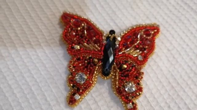 Брошь бабочка. Красный бисер. 11 июля 2021 г.