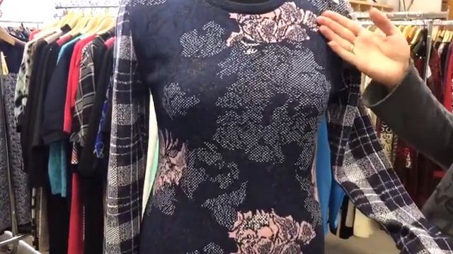 Milana Style. Трикотажное платье. Модель 2177-16. Эффект блузки с юбкой. Цветы и клетка. Современно