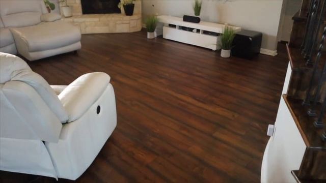beautiful 100% waterproof reclaimed wood style flooring and stair remodel!