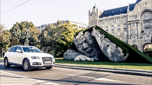 Великан появляется из-под земли в центре Будапешта