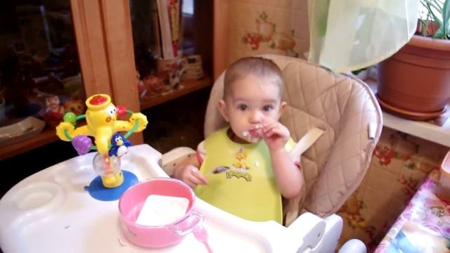 Сама кушает творог - 1 год и 1 месяц