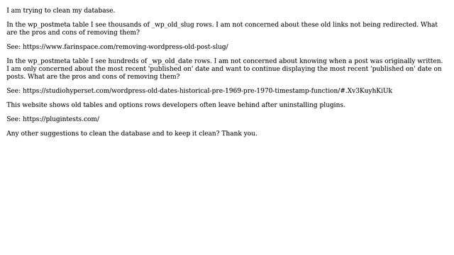 Wordpress: Removing old_slug and old_date from WordPress Database