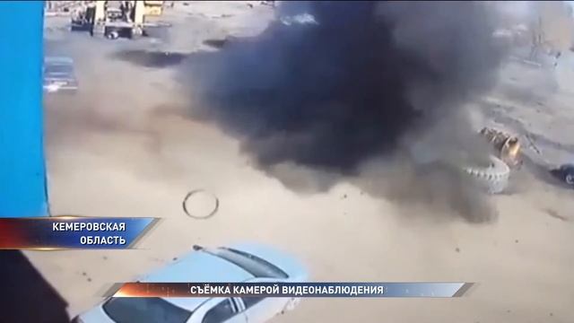 Колесо от БЕЛАЗа расплющило легковую машину