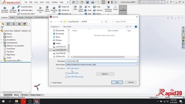 Convert 3D Model into 3D pdf with SolidWorks