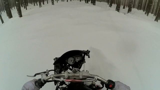 Эндуро на спортбайке по лесу.