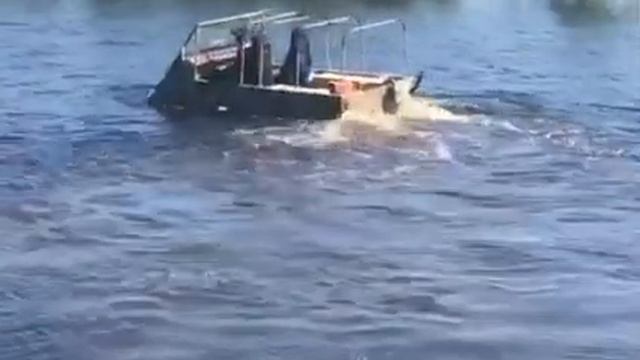 На толкаче Лидер через болото.