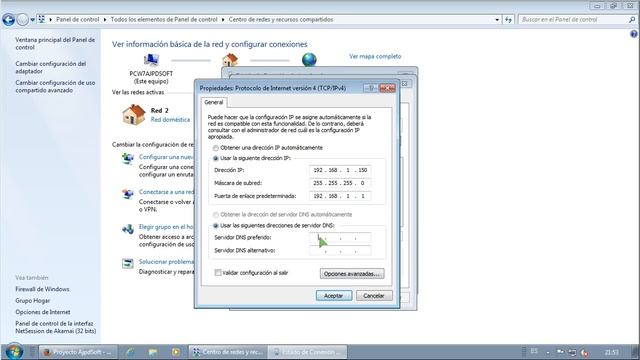 Configurar red y conexión a Internet en Windows 7 en PC de casa