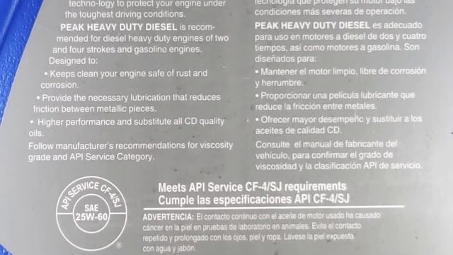 Aceite Peak SAE 25W-60 para motor-Conoce la verdad del API CF-4- Diésel Oil