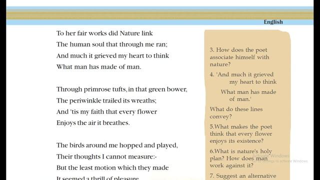 SSLC ENGLISH LINES WRITTEN IN EARLY SPRING